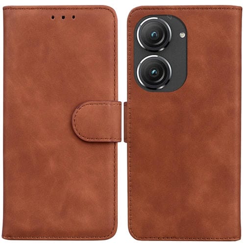 Funda de Cuero Flip para Asus Zenfone 9 Skin Feel Pure Color (Marrón)