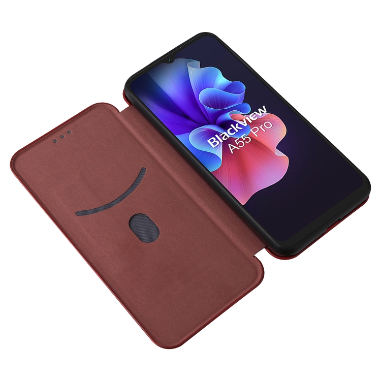 Funda para BlackView A55 Pro con Tapa Horizontal y Textura de Fibra de Carbono (Marrón)