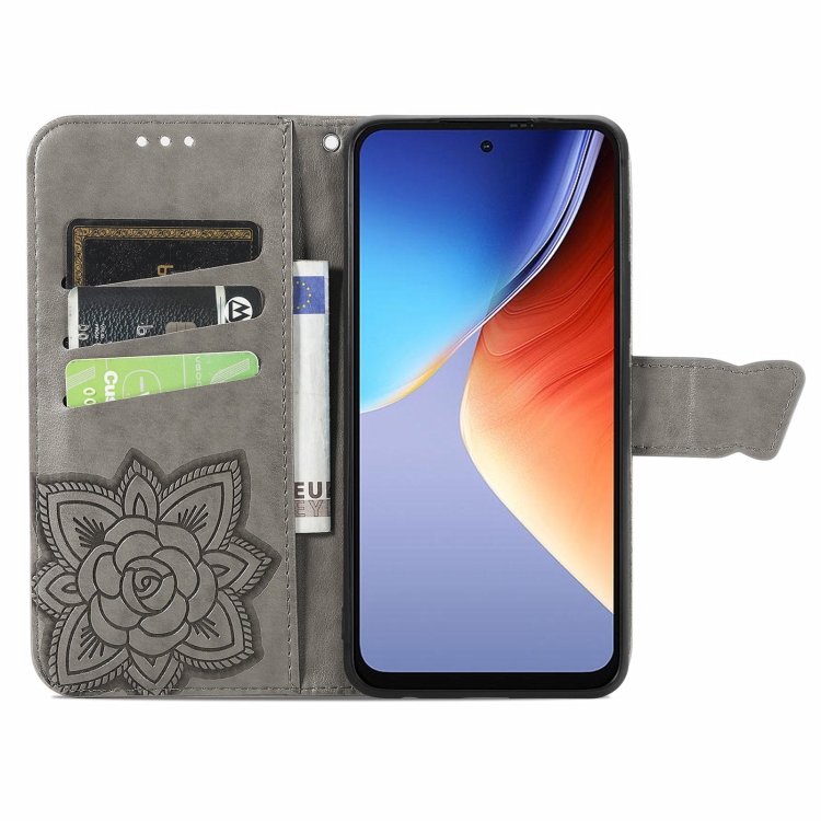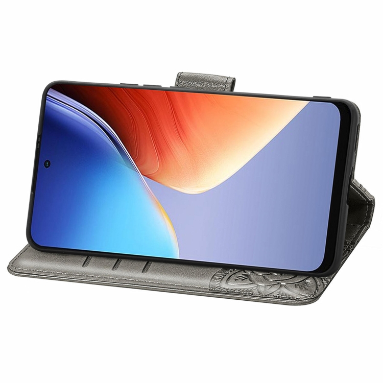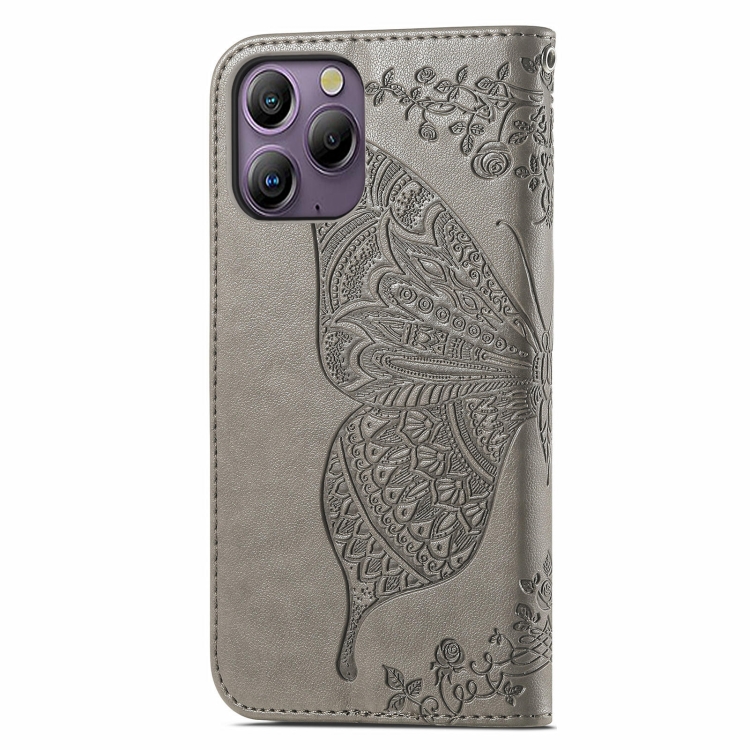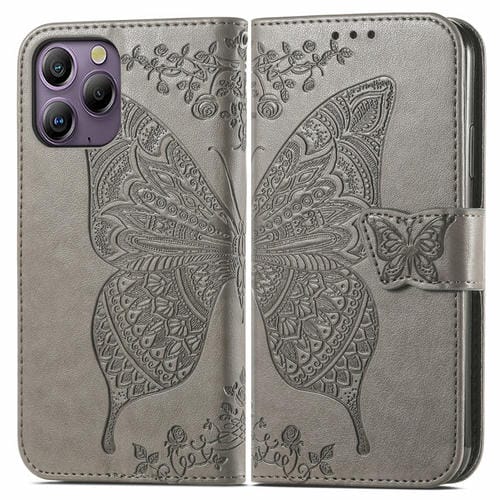 Funda para Teléfono BlackView A96 Cuero con Relieve Flor de Amor y Mariposa (Gris)