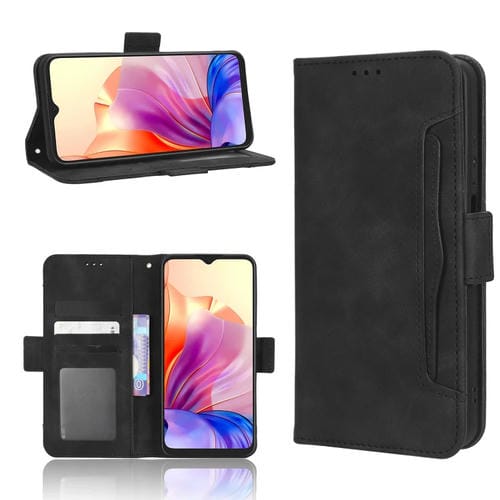 Funda de Cuero para BlackView Oscal C80 con Ranuras para Tarjetas y Textura Skin Feel (Negro)