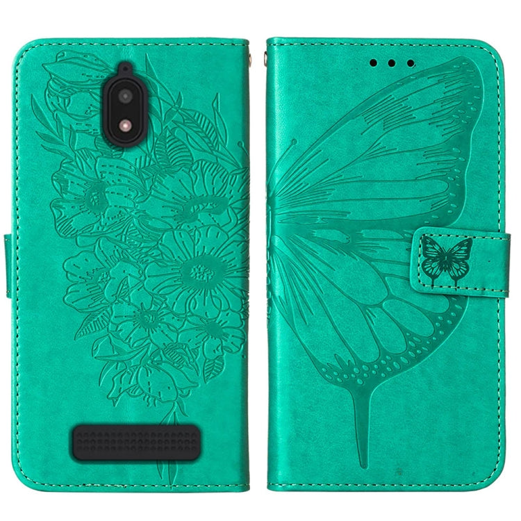 Estuche para Teléfono BLU View 2 2022 / 2020 Cuero con Tapa Mariposa En Relieve (Verde)