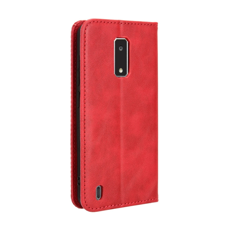 Funda para Teléfono BLU View 4 / View 2 202 Cuero Textura Retro con Hebilla Magnética (Rojo)