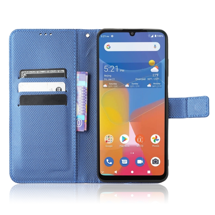 Funda para Consumer Cellular Zmax 5G de Cuero con Textura de Diamante (Azul)