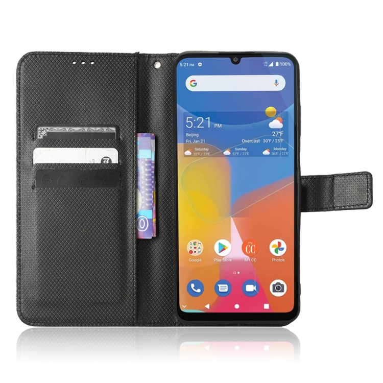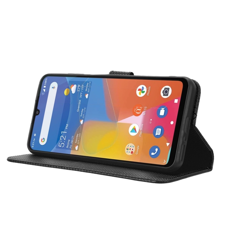 Funda para Consumer Cellular Zmax 5G Cuero Textura de Diamante (Negro)
