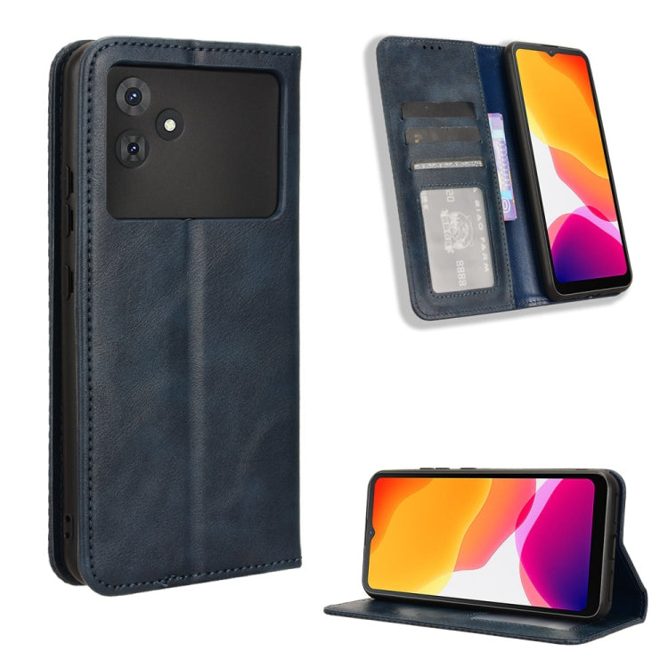 Funda para Cubot Note 21 de Cuero con Textura Retro y Hebilla Magnética (Azul)