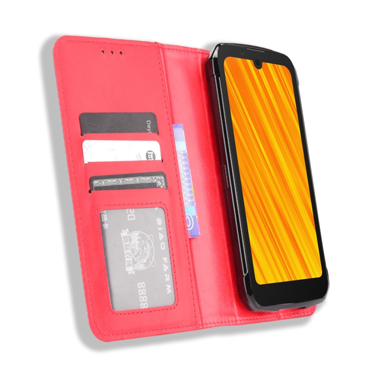 Funda Cuero Doogee S59 S59 Pro Flip Horizontal con Soporte y Ranuras (Rojo)