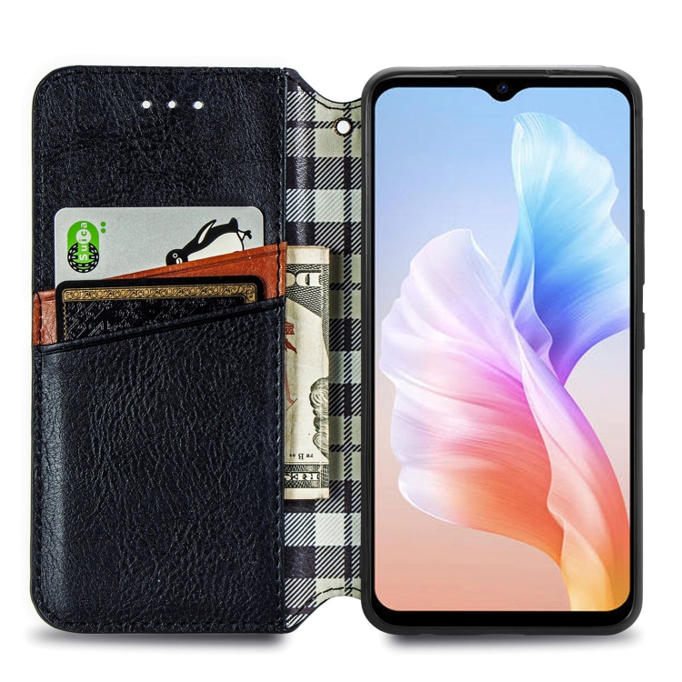 Caja de teléfono Doogee X98 Pro / X98 de cuero magnético prensado con rejilla cúbica (Negro)