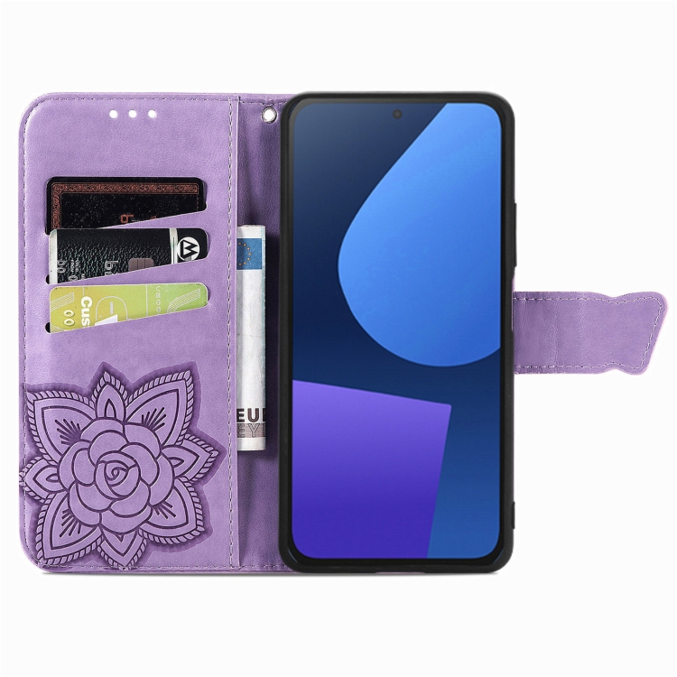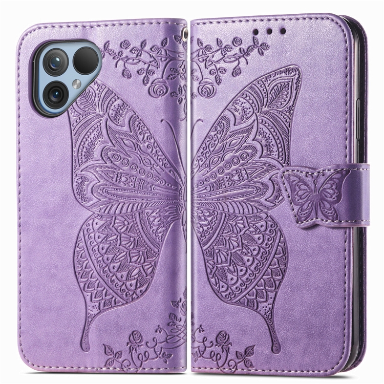 Funda para Fairphone 5 Cuero con Relieve Flor de Amor y Mariposa (Púrpura Claro)