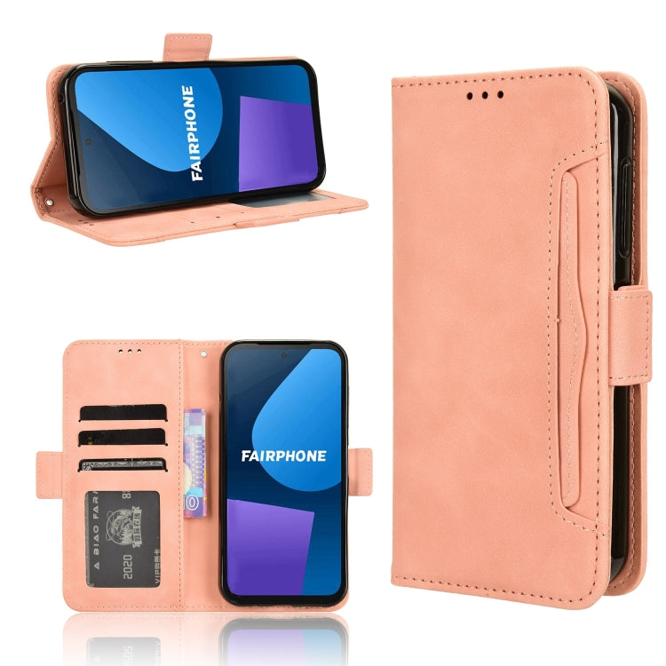 Funda de cuero para Fairphone 5 Skin Feel con textura de becerro y ranuras para tarjetas (Rosa)