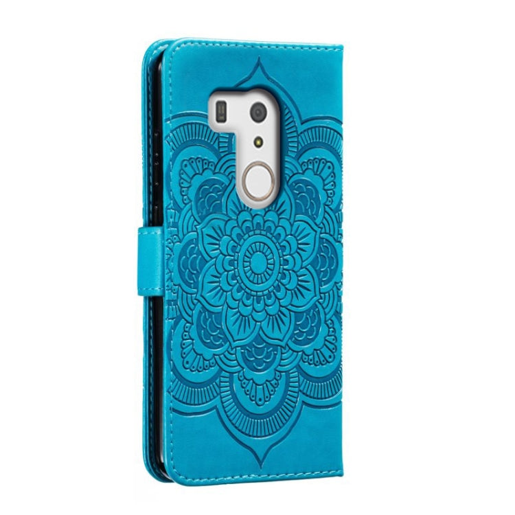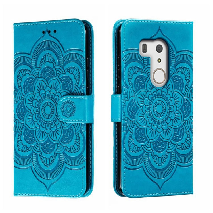 Funda de Cuero para Fujitsu Arrows Be3 F-01L con Patrón En Relieve (Azul)
