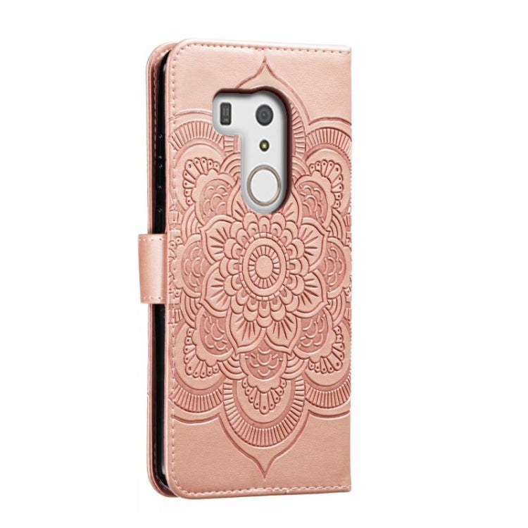 Funda de Cuero para Fujitsu Arrows Be3 F-01L con Patrón Sun Mandala (Oro Rosa)