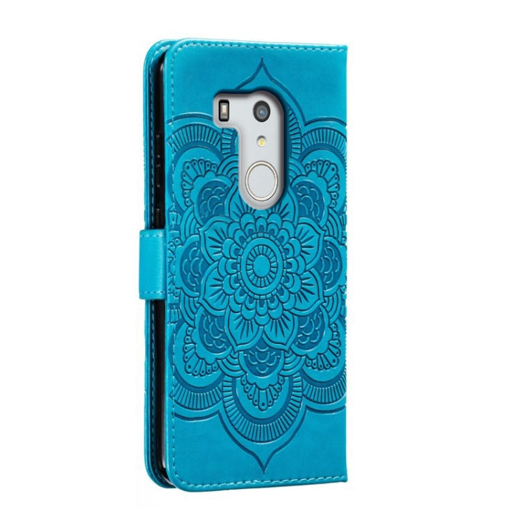 Funda de Cuero para Fujitsu Arrows Be3 F-02L con Patrón En Relieve (Azul)