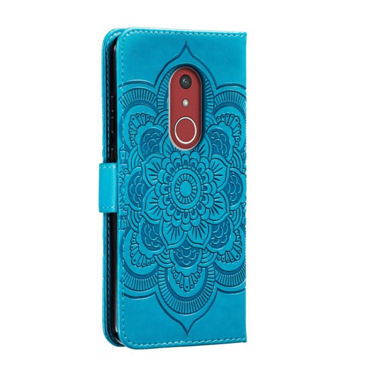Funda de Cuero para Fujitsu Arrows Be4 Plus F-41B con Patrón en Relieve (Azul)