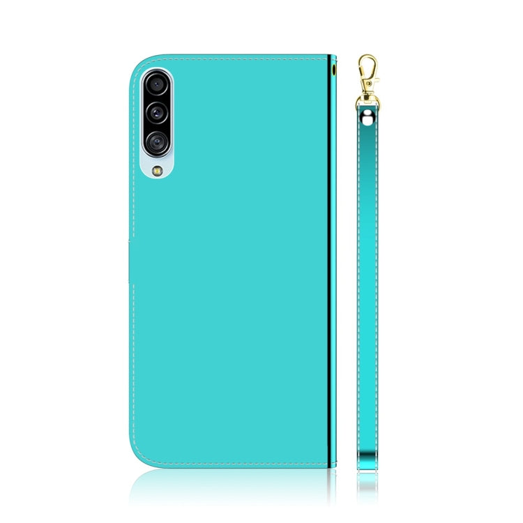 Estuche de Cuero para Galaxy A90 5G con Tapa Horizontal, Espejo Imitado, Soporte, Ranuras para Tarjetas, Billetera y Cordón (Verde Menta)