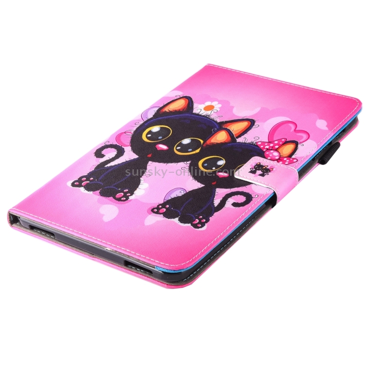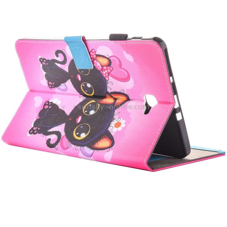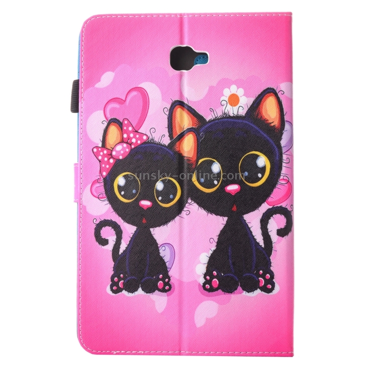 Funda de Cuero para Galaxy Tab A 10.1 (2016) T580 con Soporte y Ranuras (Cartoon Cat)