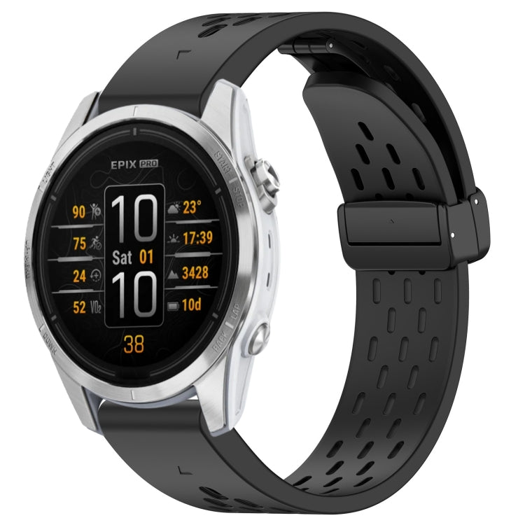 Correa de Reloj de Silicona para Garmin Epix Pro 42mm 20mm con Hebilla Plegable Magnética (Negro)