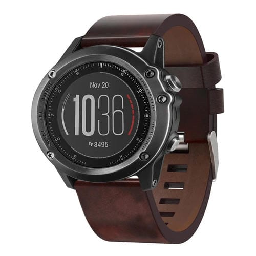 Correa de Reloj para Garmin Fenix 3 Sapphire 26mm con Hebilla de Acero y Cuero (Marrón)