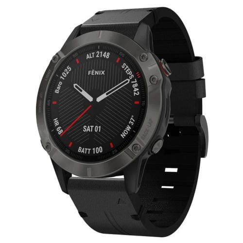 Correa de Reloj para Garmin Fenix 6 Sapphire GPS 22mm Cuero con Hebilla de Acero (Negro)