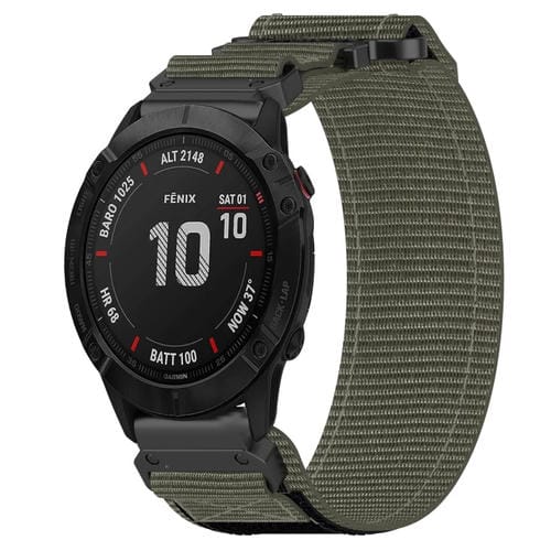 Correa de Reloj para Garmin Fenix 6X Sapphire con Cierre de Gancho y Bucle de Nailon 26mm (Gris)