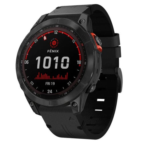 Correa de Reloj para Garmin Fenix 7 Solar 22mm con hebilla de acero y cuero (Negro)