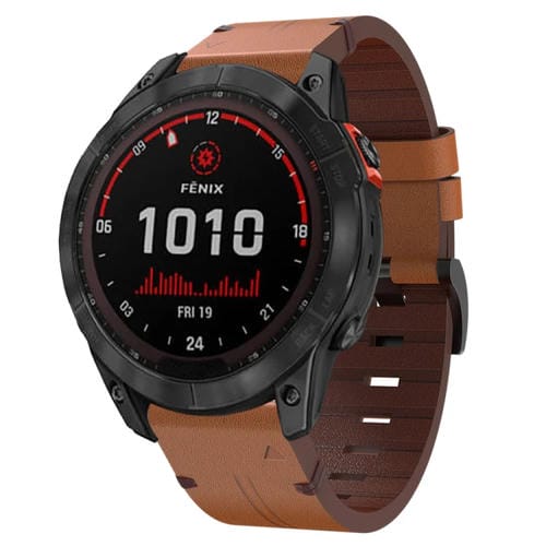Correa de Reloj para Garmin Fenix 7X Solar 26mm con hebilla de acero y cuero (Marrón)