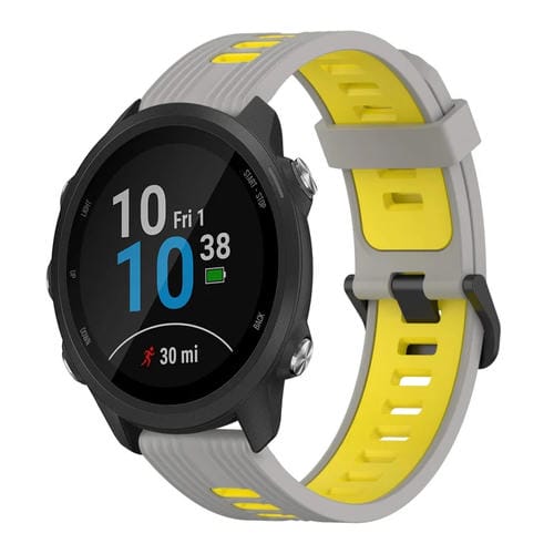 Banda de Reloj de Silicona Para Garmin Forerunner 245 20mm Patrón Vertical (Gris+Amarillo)