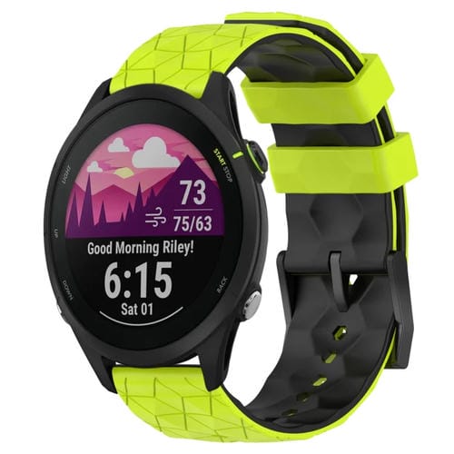 Banda de Reloj Silicona para Garmin Forerunner 255 Music 22mm Patrón de Fútbol (Verde Lima + Negro)