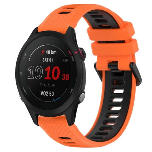 Correa de silicona para Garmin Forerunner 255S Music 18mm Sports (Naranja + Negro)