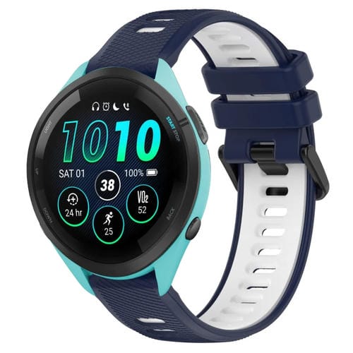 Correa de Silicona 22mm para Garmin Forerunner 265 Sports (Azul Medianoche + Blanco)