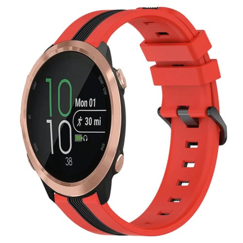 Banda de Reloj Garmin Forerunner 645 Music 20mm Silicona Dos Colores (Rojo + Negro)