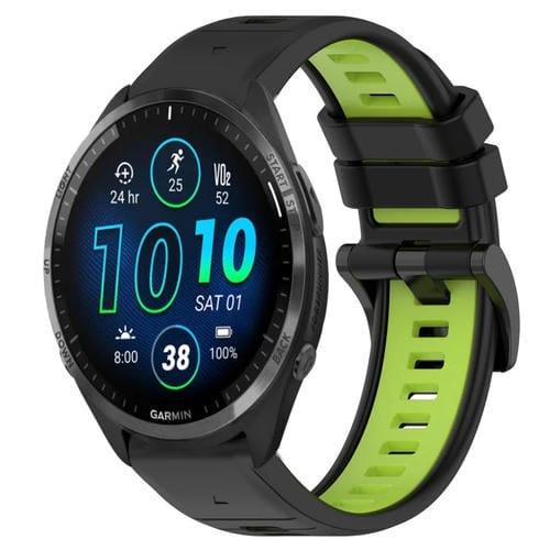 Correa deportiva silicona para Garmin Forerunner 965 22mm (Negro + Verde Lima)