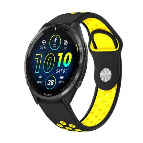 Banda de Reloj Garmin Forerunner 965 22mm Silicona Transpirable (Negro + Amarillo)