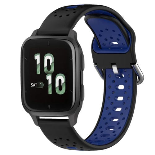Banda de Reloj de Silicona para Garmin Forerunner Sq2 20mm Transpirable Dos Colores (Negro + Azul)