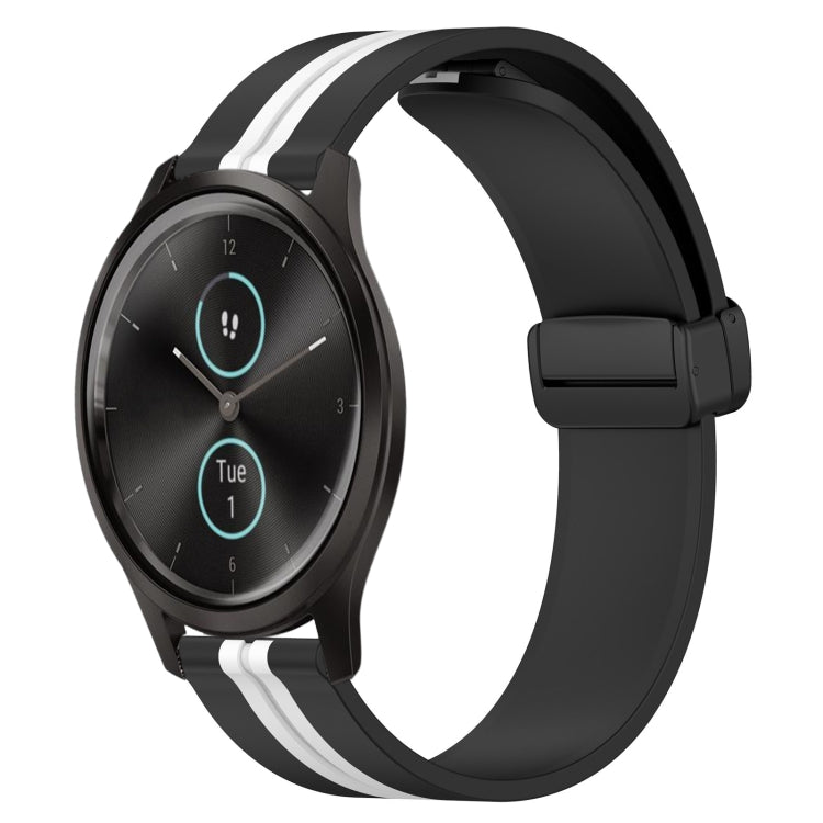 Correa de Reloj de Silicona para Garmin Garminmove Style 20mm con Cierre Magnético Plegable (Negro + Blanco)