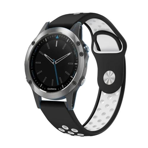 Correa de Reloj para Garmin Quatix 5 Sapphire 22mm Silicona Transpirable Deportiva (Negro + Blanco)
