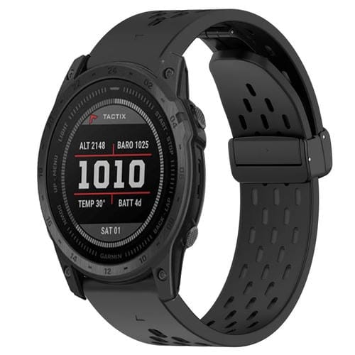 Para Garmin Tactix 7 Correa de Reloj de Silicona con Orificio y Hebilla Plegable de 26mm (Negro)