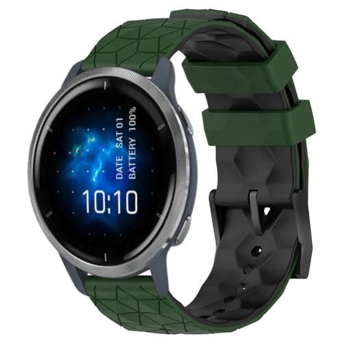 Banda de Reloj Garmin Venu 2 Silicona 22mm Dos Colores Patrón Fútbol (Verde Militar + Negro)