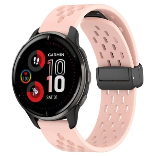 Para Garmin Venu 2 Plus Correa de Reloj de Silicona con Cierre Magnético Plegable de 20mm (Rosa)