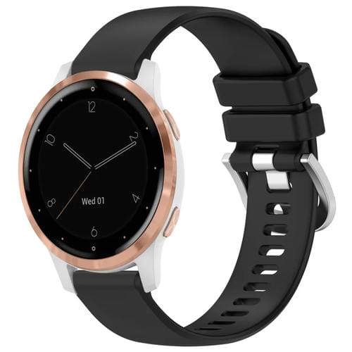 Para Garmin Vivoactive 4S Correa de Reloj de Silicona con Hebilla Plateada Líquida Brillante (Negro)