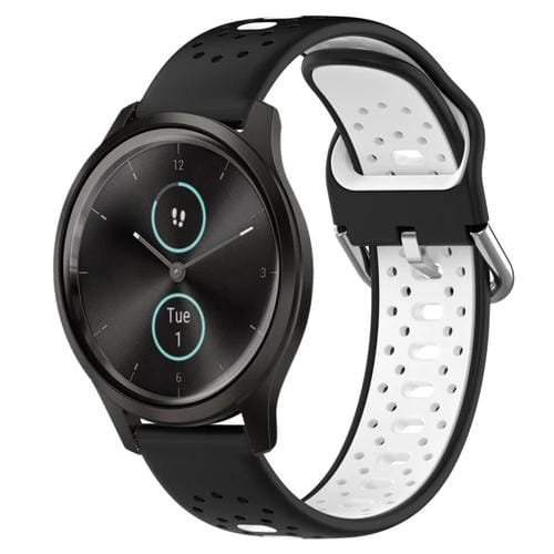 Banda de Reloj para Garmin Vivomove Style 20mm Silicona Transpirable Dos Colores (Negro + Blanco)