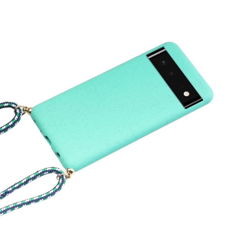 Funda para Google Pixel 6 Material de Paja de Trigo con Caso TPU y Cordón (Verde)