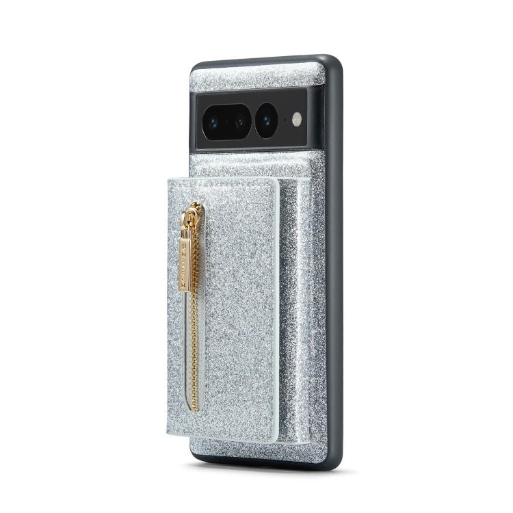 Funda de Cuero Dg.Ming M3 Series para Google Pixel 7 Pro con Glitter y Porta Tarjetas (Plata)