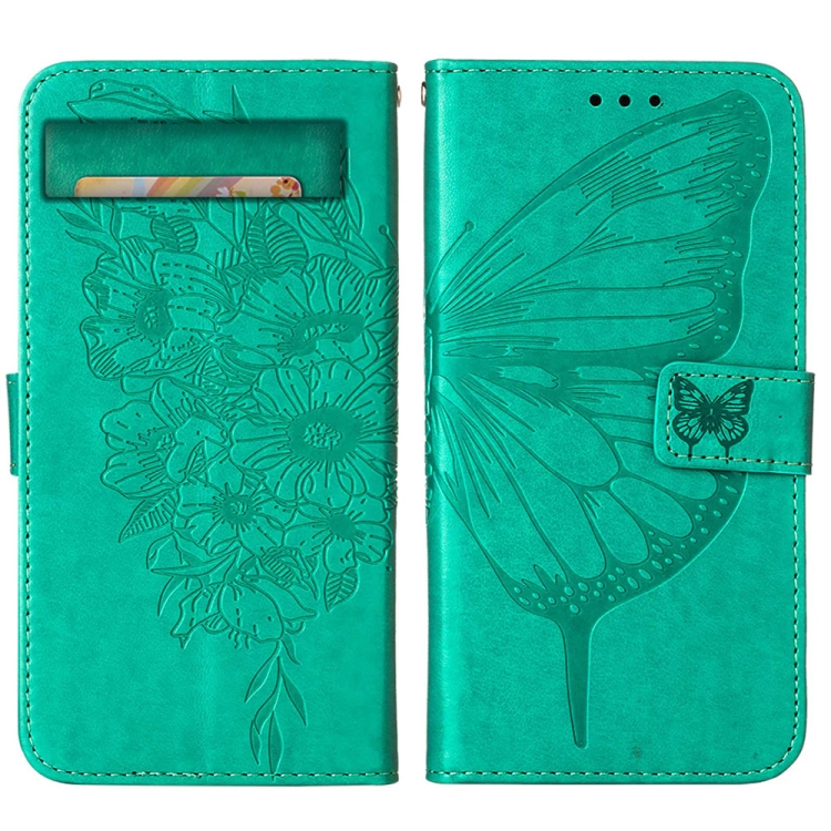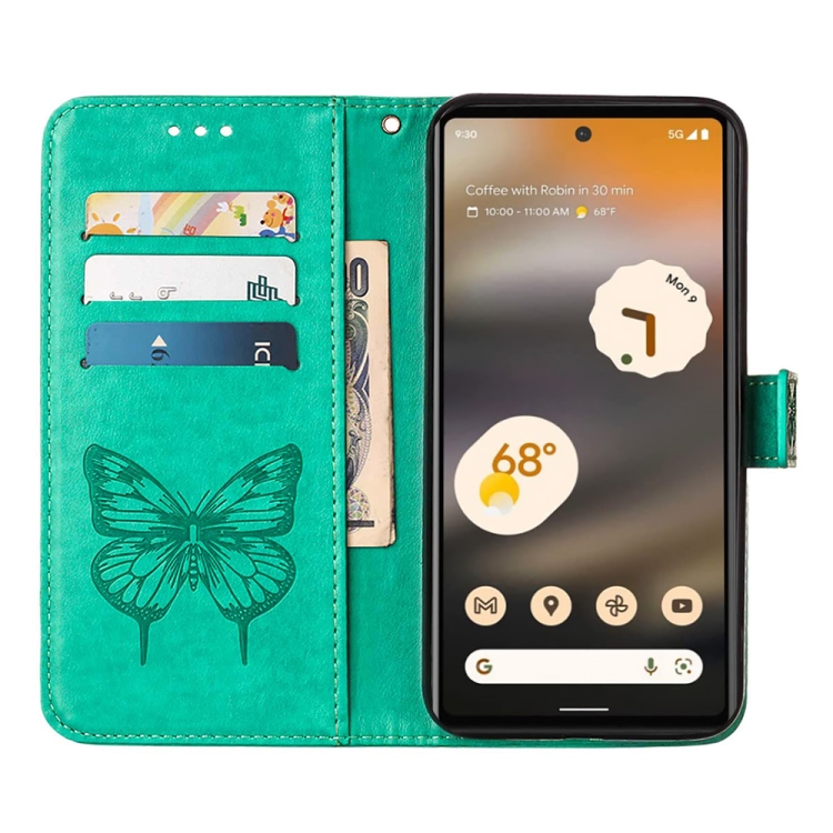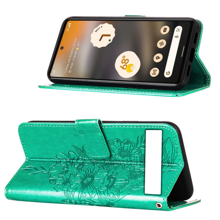 Funda de Cuero para Google Pixel 7A con Tapa de Mariposa en Relieve (Verde)