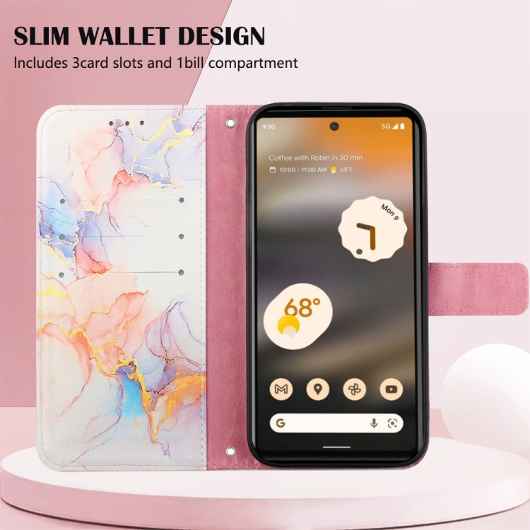 Funda para Google Pixel 7A Pt003 con Tapa de Cuero y Patrón de Mármol (Blanco Mármol)
