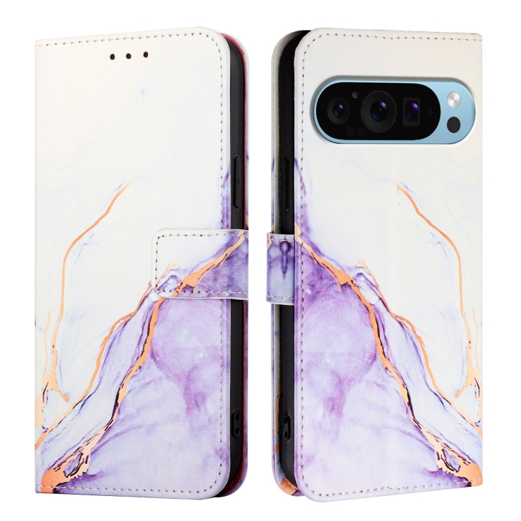 Funda de Cuero con Tapa para Google Pixel 9 Pro XL Pt003 con Patrón de Mármol (Blanco y Morado)