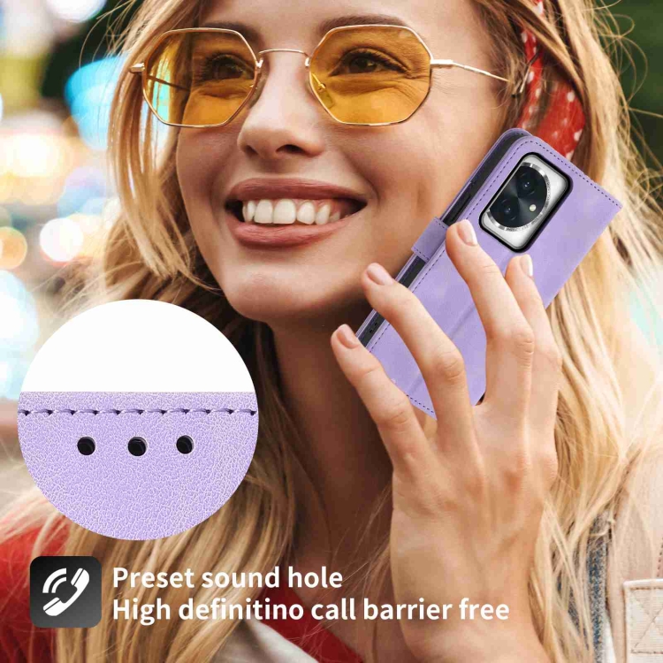 Funda de Cuero para Honor 100 con Billetera, Relieve y Flores, Tacto de Piel (Púrpura)