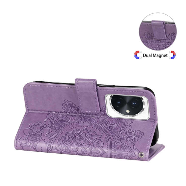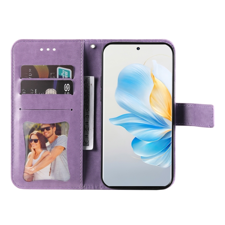 Funda de Cuero para Honor 100 con Estampado de Flores de 7 Pétalos (Púrpura Claro)
