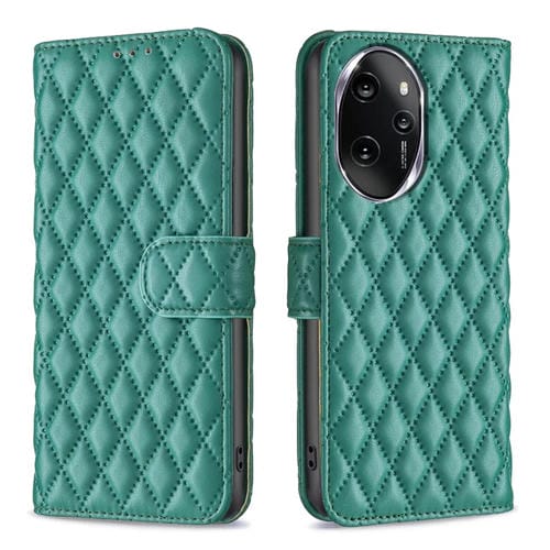 Funda de Cuero Wallet con Tapa para Honor 100 Pro Diamond Lattice (Verde)