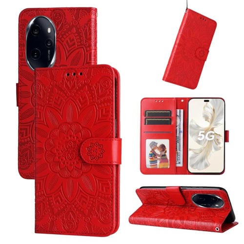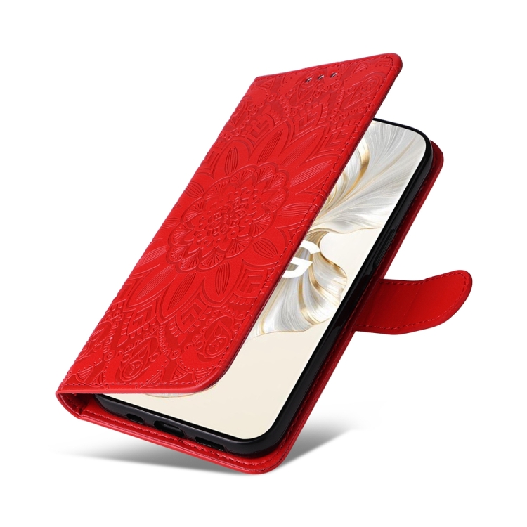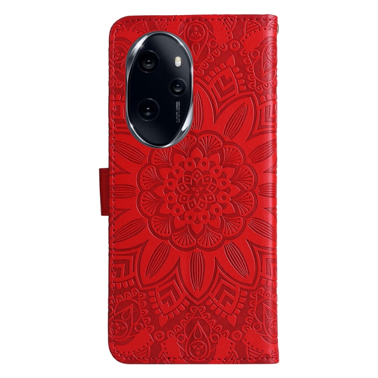 Funda de Cuero para Honor 100 Pro con Girasol en Relieve (Rojo)