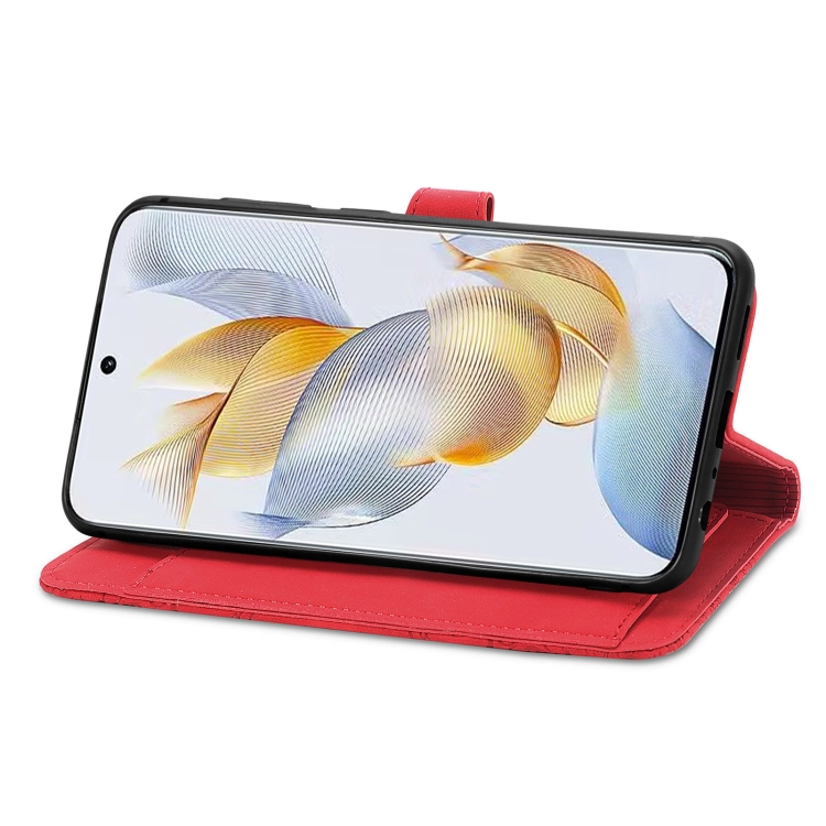 Funda de Cuero para Honor 90 con Cremallera y Flores en Relieve (Rojo)
